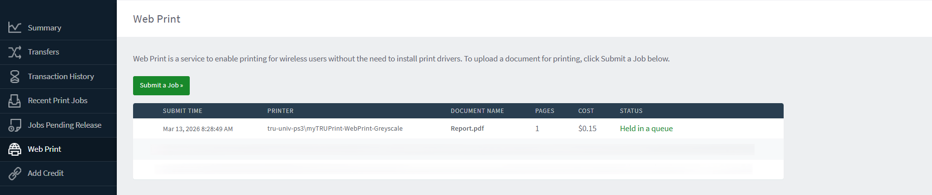 2. Select Web Print in the navigation, then choose Submit a Job.
